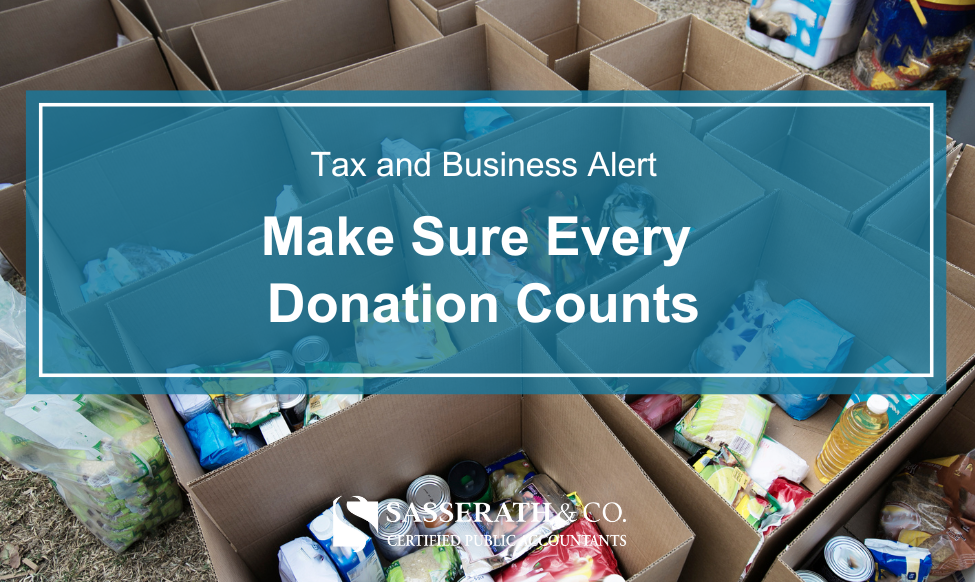 There are substantiation rules that apply when giving cash or property to charity, and they vary based on the type and amount of the donation. For example, some donated property may require you to obtain a professional appraisal of value. Contact us for more guidance.